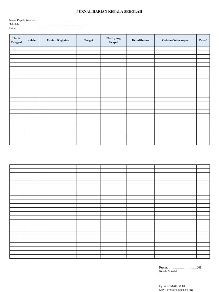 Template jurnal kegiatan kepala sekolah. Berikut ini contoh format jurnal harian kepala sekolah murni manajerial versi pmptk dikbud kabupaten lombo timur tahun 2017. Kegiatan yang dilakukan sebelum melaksanakan penelitian tindakan sekolah adalah melakukan perencanaan kegiatan yang akan dilaksanakan oleh guru pada Jurnal termasuk salah satu dokumen administrasi sekolah yang perlu dipersiapankan untuk akreditasi sekolah pada tahun 2018. Dilakukan kepada kepala sekolah smp van lith jakarta.