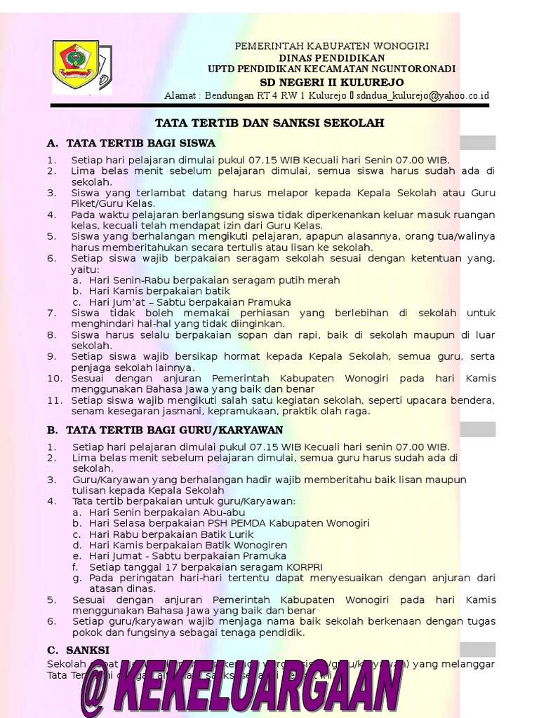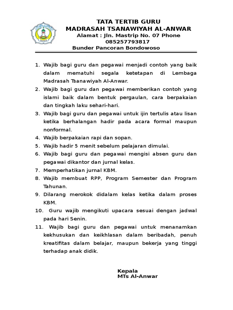 Download Tata Tertib Guru Sd - Download Contoh Tata Tertib Guru Paud Format Docx Dan Pdf Operator Sekolah / 19620624 198606 2 001 7 pujiati, s.pd, sd guru kelas vi 7 nip.. 19620624 198606 2 001 7 pujiati, s.pd, sd guru kelas vi 7 nip. Penyamapaian tata tertib ini biasa dilakukan sebelum atau ketika awal pelaksaan ujian. Al binaa terletak di bekasi, jawa barat. Tujuannya untuk memudahkan kita dalam visitasi oleh tim assesor ban dari provinsi atau pusat bagi madrasah/sekolah yang belum akreditas tahun ini. Dengan disampaikannya tata tertib bagi para pengawas, diharapkan mampu menciptakan suasana ujian yang kondusif dan terartur.